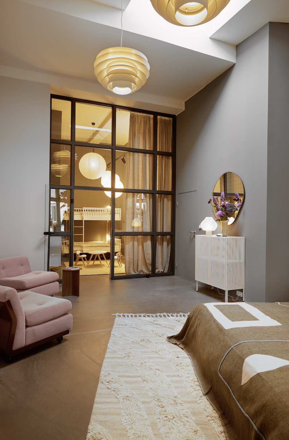 Jetzt kann man tatsächlich Tür an Tür zum Showroom einchecken und erhält bei Buchung den Schlüssel zu einer 170 qm großen Fläche, die mit einer kuratierten Auswahl skandinavischer Designmöbel zum Fühlen und Verlieben eingerichtet ist.